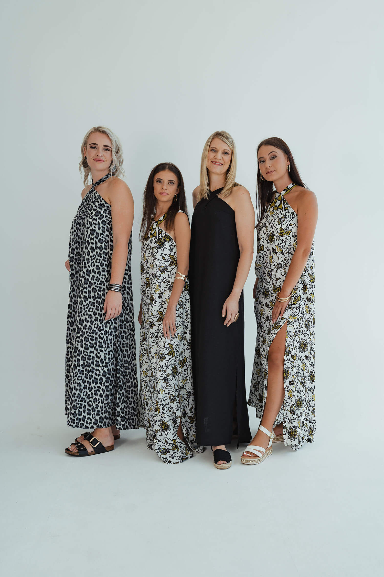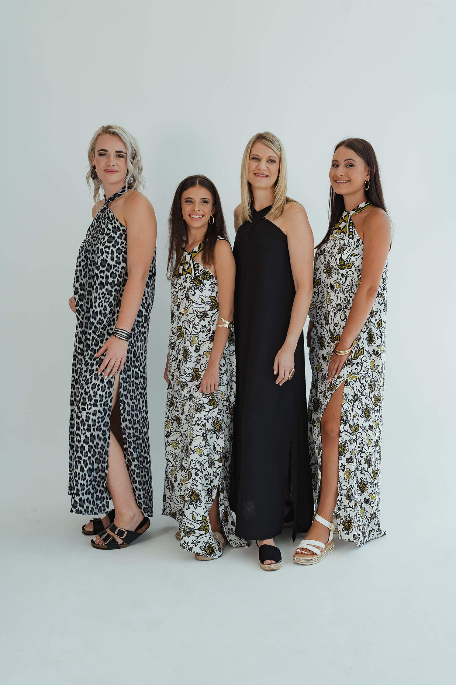 Our new convertible cross-neck maxi dresses are designed for the woman who loves elegance with a touch of versatility. With a neckline that can be tied in multiple ways, you can create a look that's uniquely yours-whether it's a sleek halter, an elegant twist, or a statement cross: over. The Black Maxi exudes timeless sophistication, perfect for effortless evening glamour, while the Leopard Print Maxi brings bold confidence, making sure all eyes are on you.